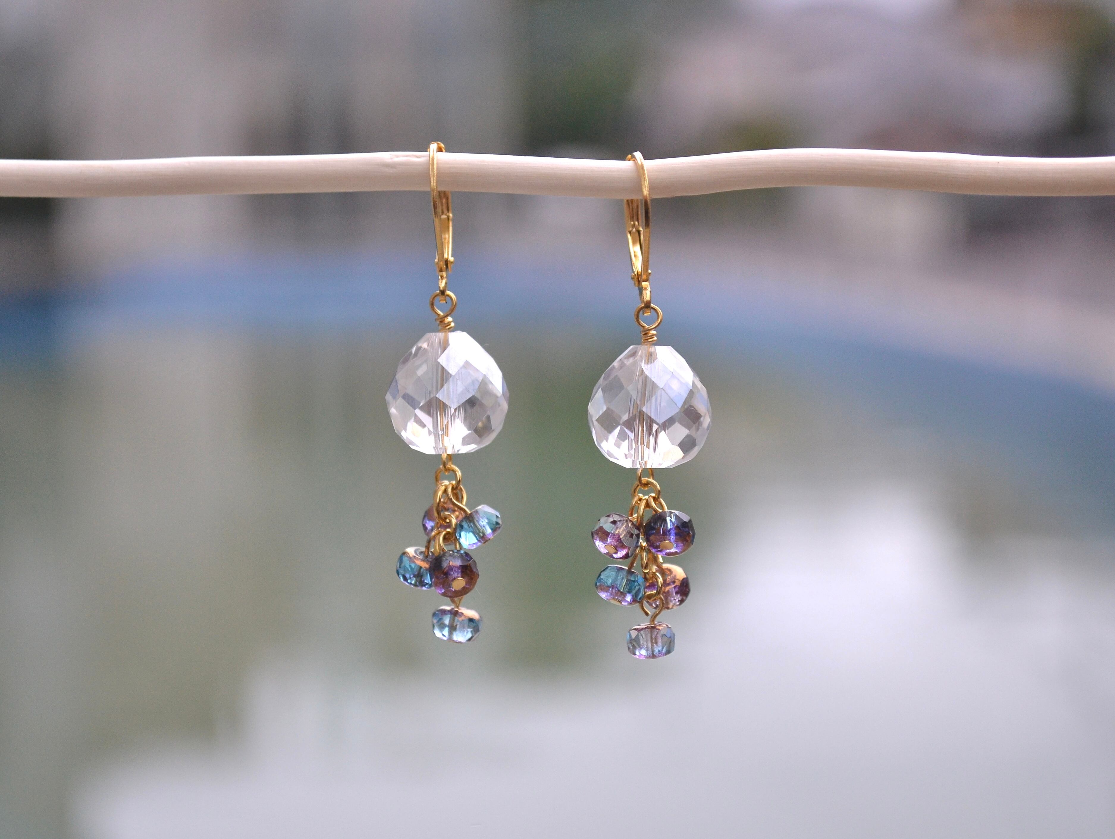 大玉のガラスビーズ に 様々な色が使われたボタンカットのチェコビーズ を 合わせました